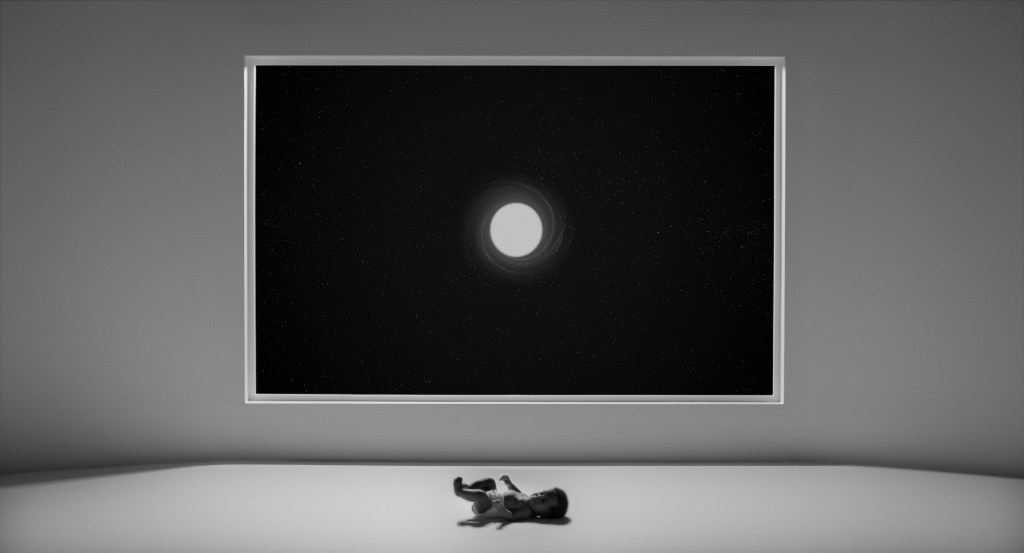 Synopsis: A baby human is raised in a stimulant free room that looks out into the vastness of space, and more specifically at a big white, blackhole that sucks in stars like a plughole. A Space Plug. With only fluid-filled beings providing them sustenance and company, the human grows to become increasingly restricted by their surroundings and so sets about looking for a way out. Searching for a life in the infinite beyond…In the Space Plug.